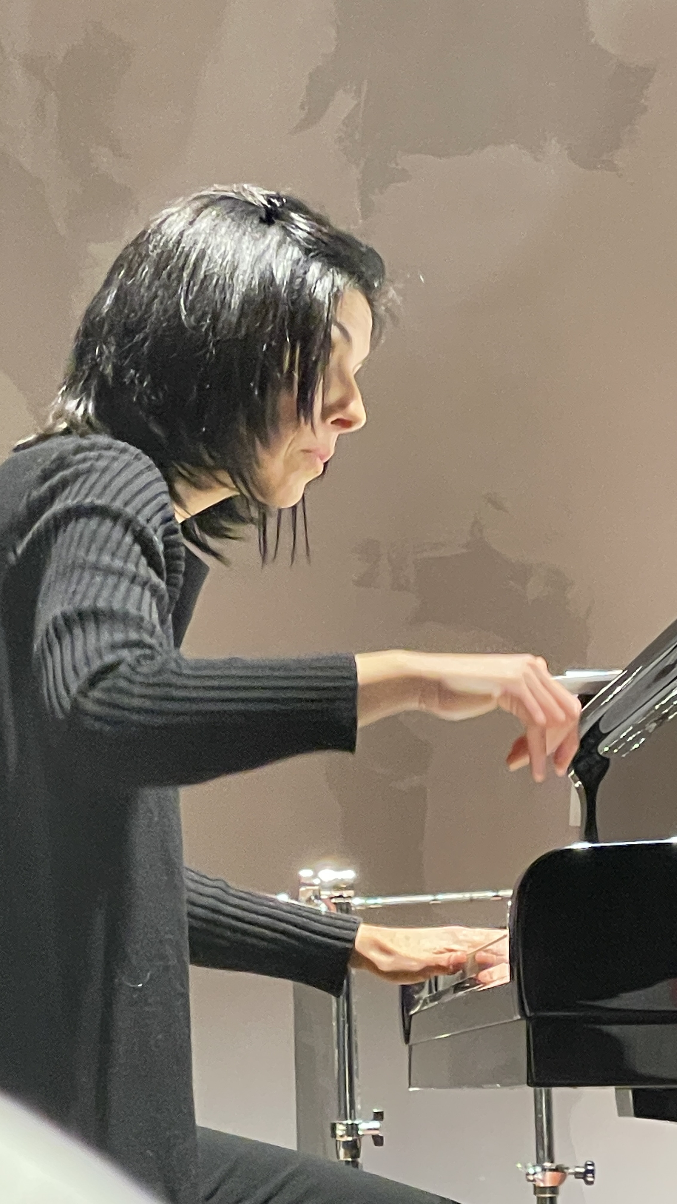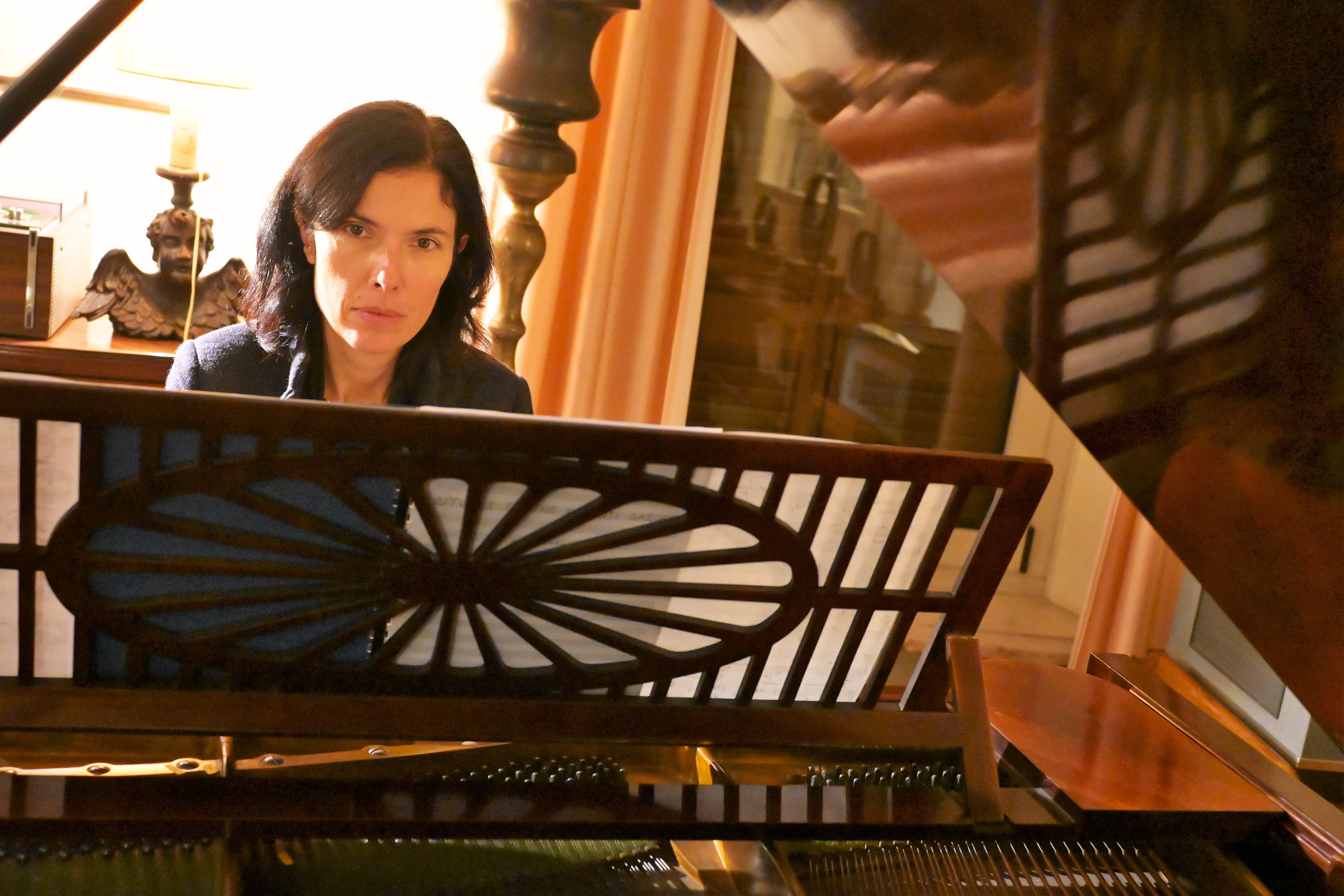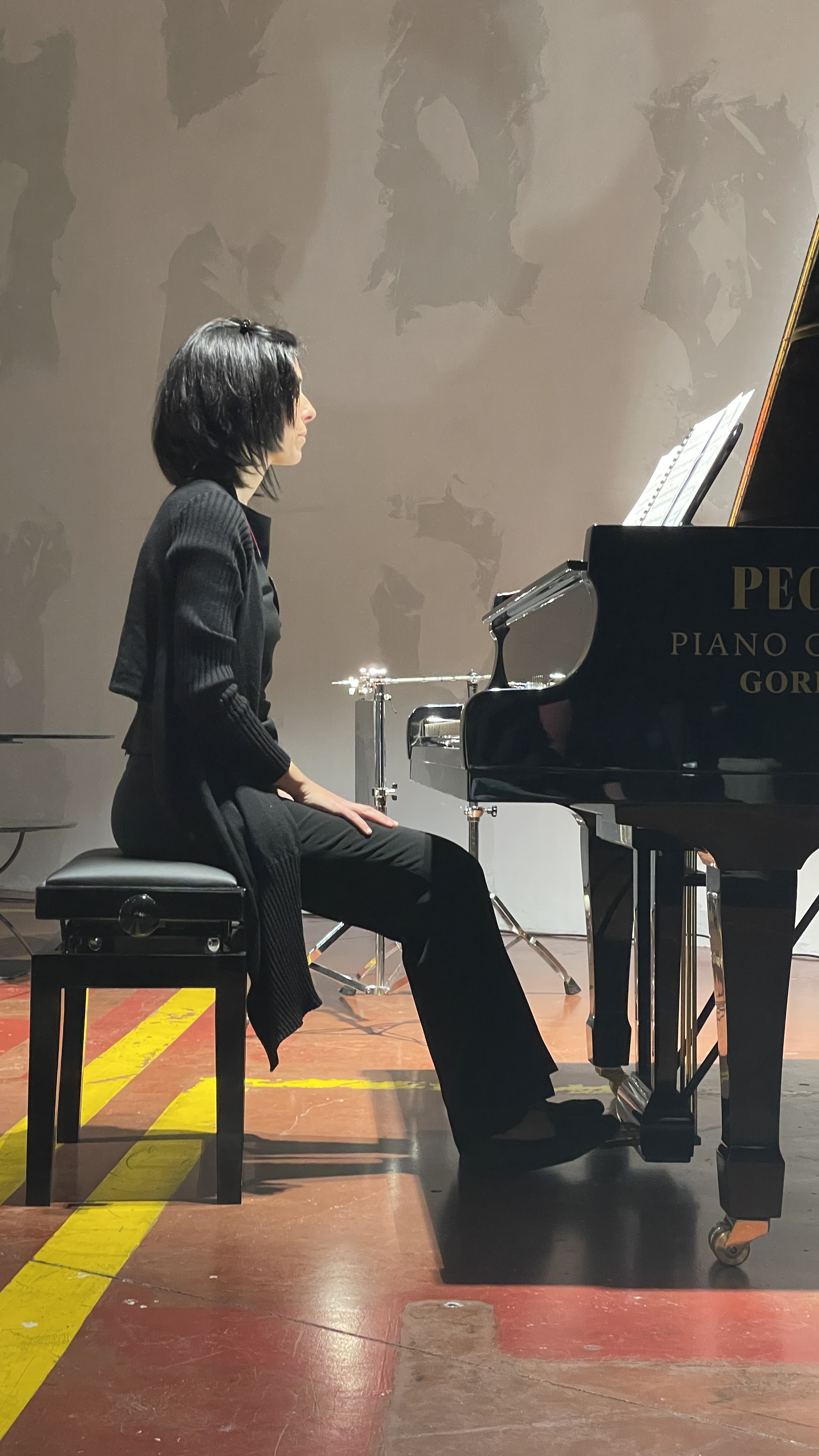 Agnese makes a stir as she sits down to play, agitating body,legs,fingers: she looks like a musical centaur.A five-limbed Monster, with tail. She does not know yet what to say.