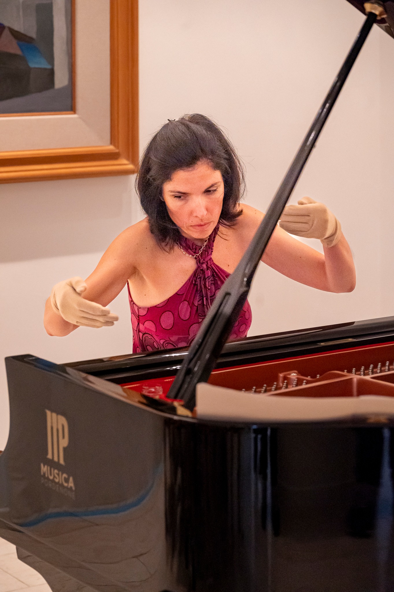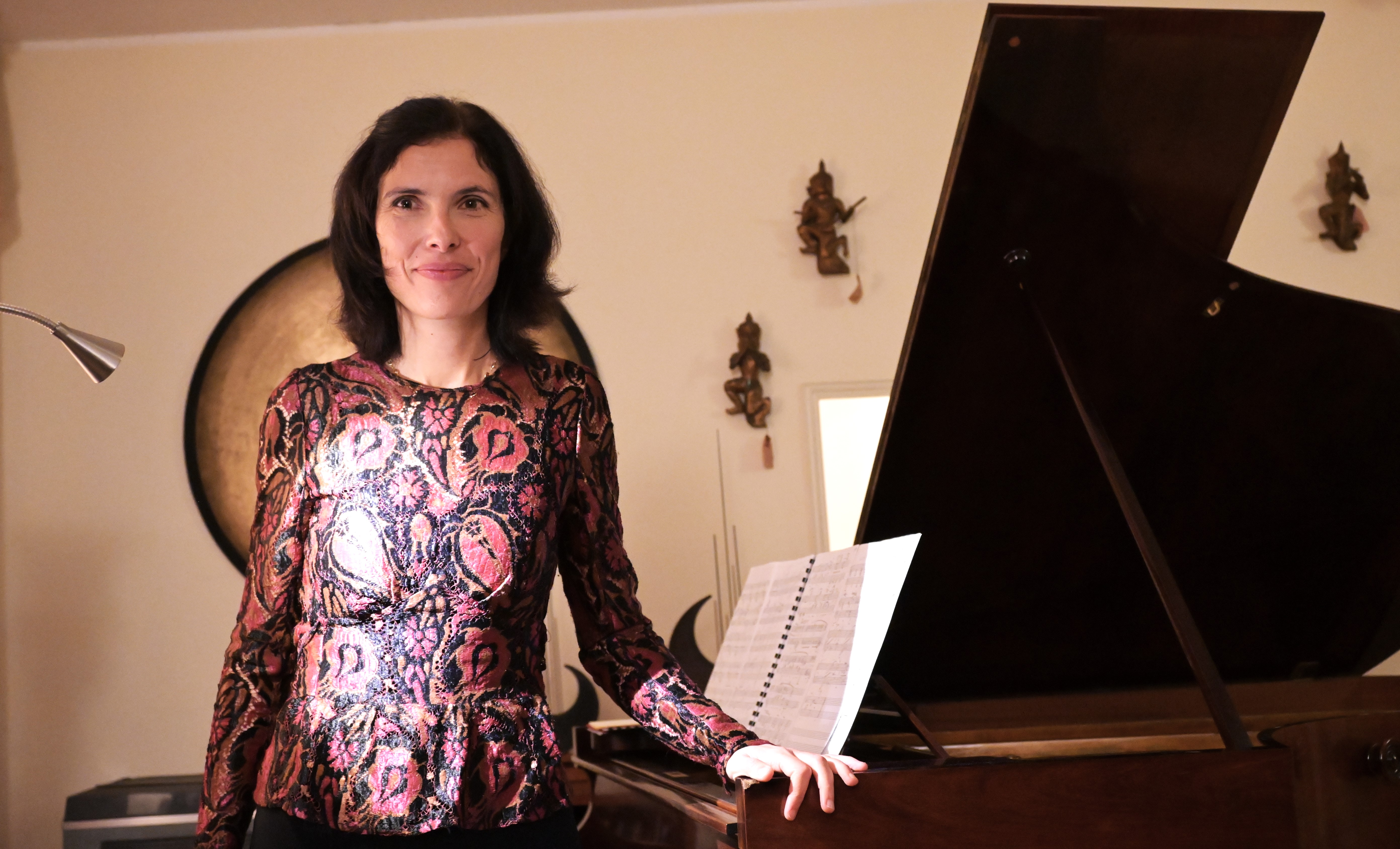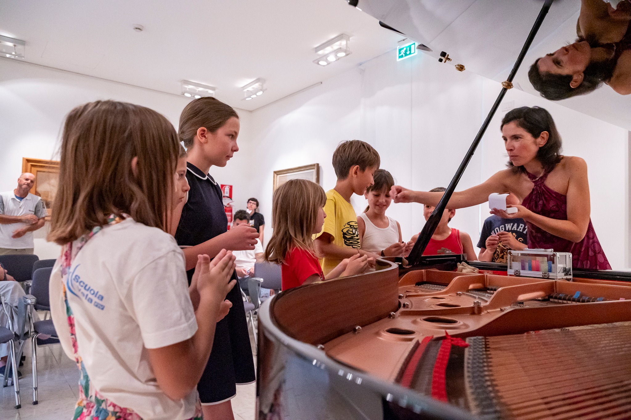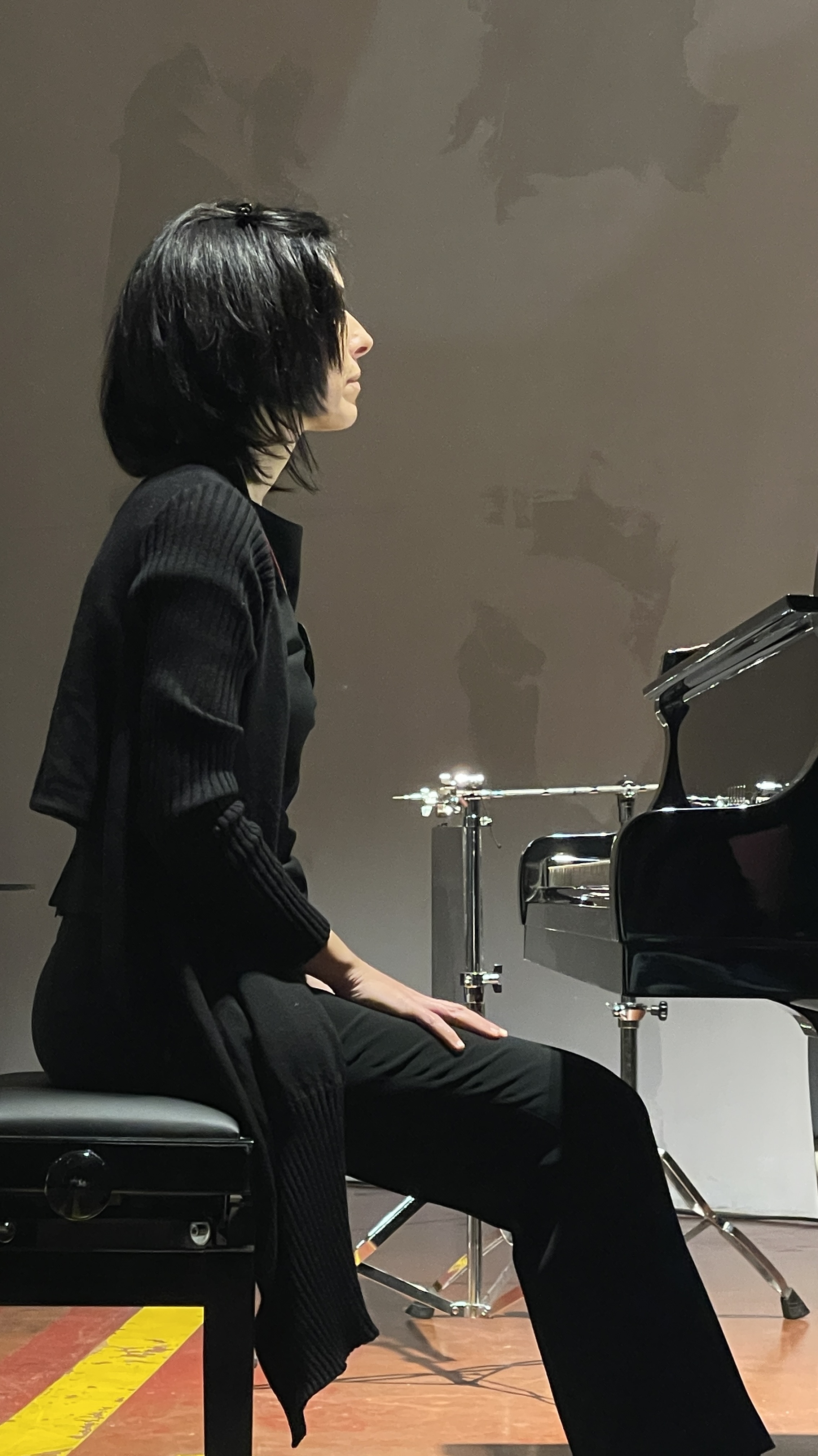 Agnese makes a stir as she sits down to play, agitating body,legs,fingers: she looks like a musical centaur.A five-limbed Monster, with tail. She does not know yet what to say.