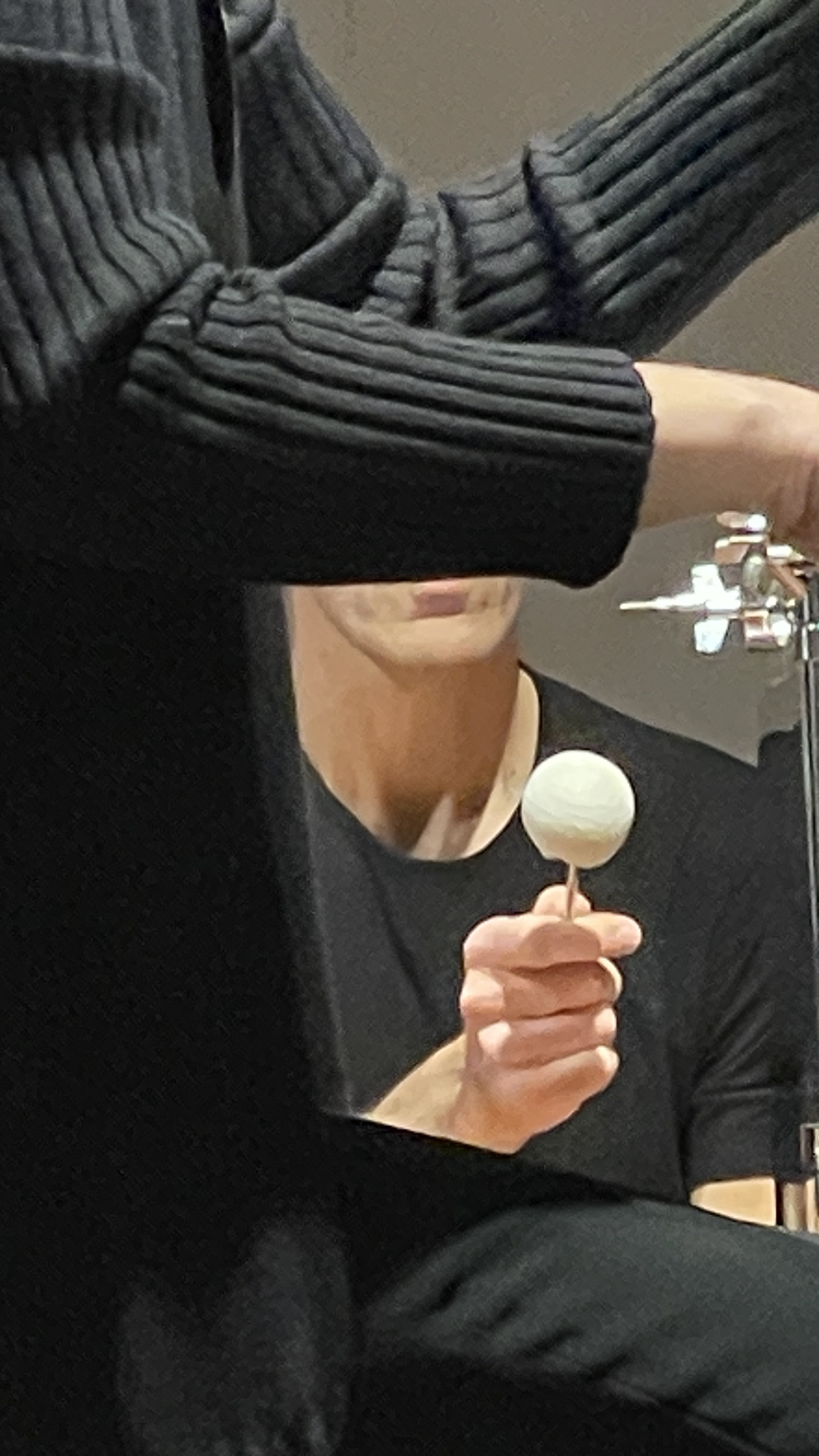 Philip tries it out with his stick : Yeah. Touched on the top the pianotoy gives a dull thud; if you hit it on the keys it gives a screech; if caressed on its side it is only capable of a banal swish.