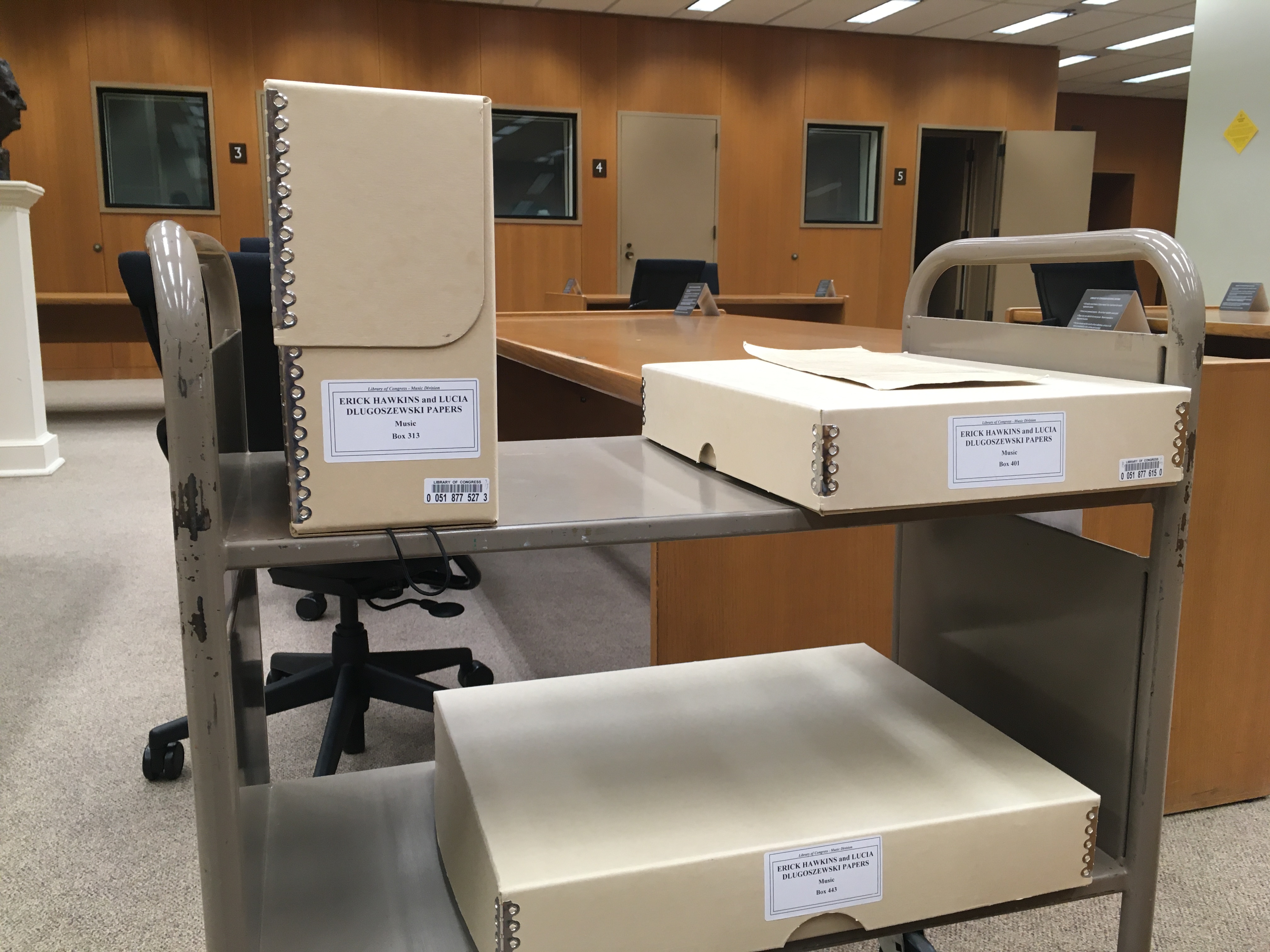 Finally trying Dlugoszewski’s original timbre-piano objects!!with Dr Libby Smigel, the Dance curator at Library of Congress, Music DivisionVery first three boxes of Dlugoszewski’s papers… how excited!Monumental, green, sunny Washington DC